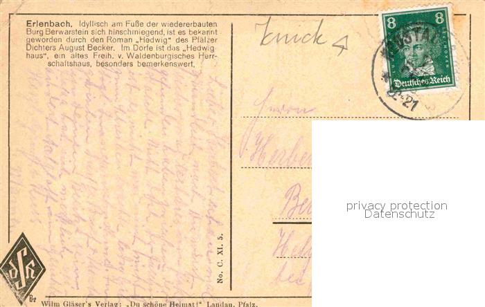 42621060 alte Postkarte Erlenbach Dahn Partie am Bach postalisch gelaufen Erhaltung siehe scans [AndreD76] KatCode: 11110007340010