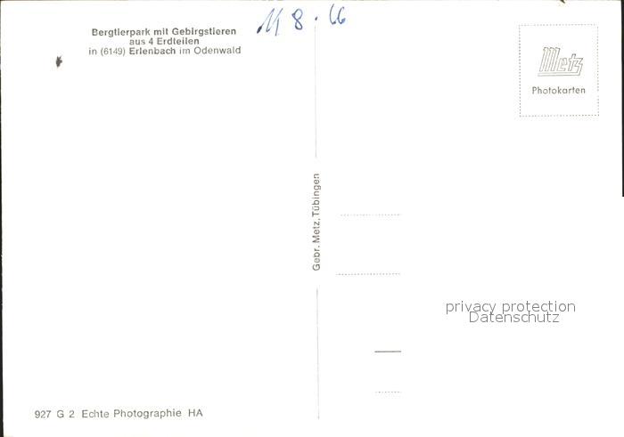 72100777 Erlenbach Erbach Bergtierpark postalisch nicht gelaufen Erhaltung siehe scans KatCode: 11110006437006