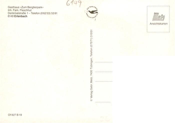 73894094 Erlenbach Fuerth Gasthaus Zum Bergtierpark postalisch nicht gelaufen Erhaltung siehe scans [WerneD78] KatCode: 11110006431007