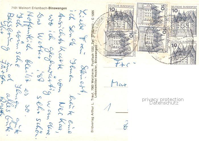 73722254 alte Postkarte Erlenbach Heilbronn Gesamtansichten postalisch gelaufen Erhaltung siehe scans [LiesaD40] KatCode: 11110008125027