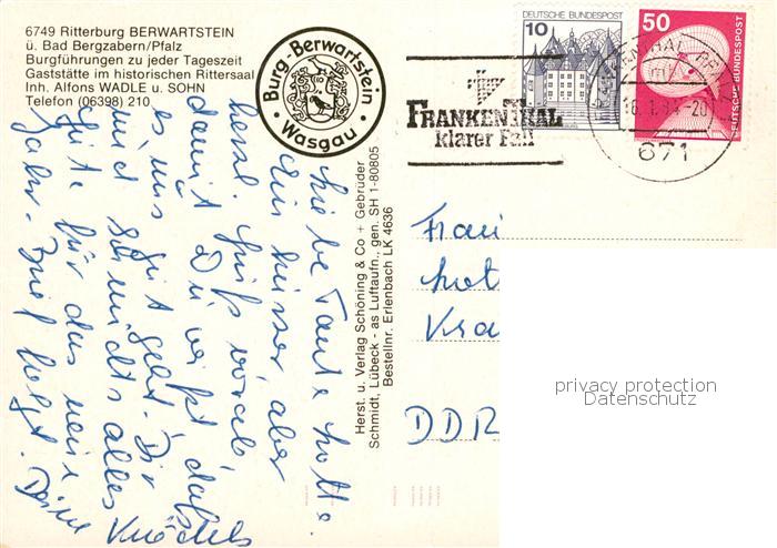 73792824 Erlenbach Wasgau Fliegeraufnahme mit Burg Berwartstein postalisch gelaufen Erhaltung siehe scans [WerneD78] alte Postkarte Wern Katcode 11110007337005