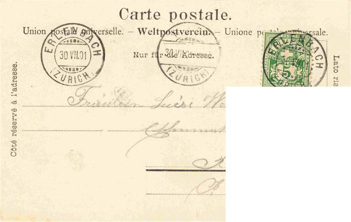 13974491 alte Postkarte Erlenbach ZH Hotel zum goldenen Kreuz postalisch gelaufen Erhaltung siehe scans [FriedD77] KatCode: 11470260895354