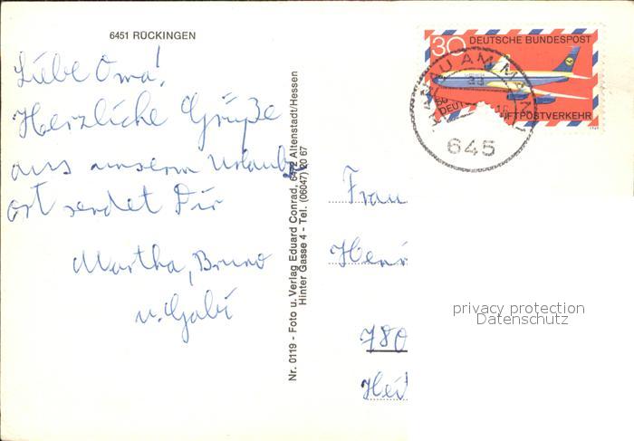 71838024 alte Postkarte Erlensee Rueckingen Kirchen Schloss Strassenpartie postalisch gelaufen Erhaltung siehe scans KatCode: 11110006435007