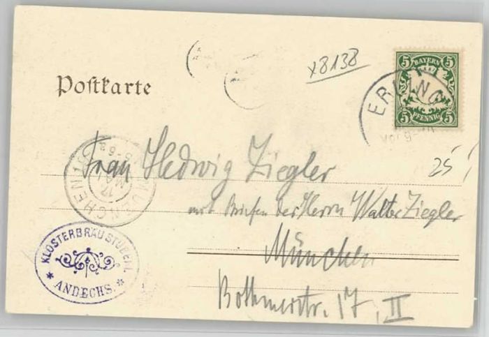 40210583 Erling Kloster Andechs Bräustübl x 1904 KatCode 11110009188117