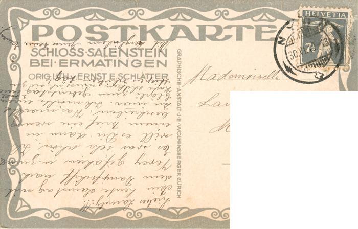 13908479 alte Postkarte Ermatingen Schloss Salenstein Steinzeichnung postalisch gelaufen Erhaltung siehe scans [FriedD77] KatCode: 11470200620110
