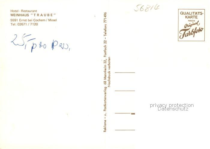 73858257 Ernst Cochem Hotel Restaurant Weinhaus Traube postalisch nicht gelaufen Erhaltung siehe scans [FriedD77] KatCode: 11110007135027