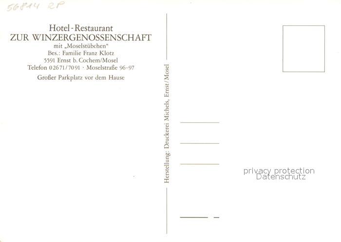 73722599 Ernst Cochem Restaurant-Hotel Zur Winzergenossenschaft Aussen postalisch nicht gelaufen Erhaltung siehe scans [LiesaD40] KatCode: 11110007135027