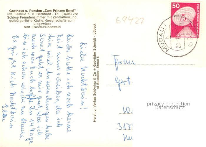 73867088 alte Postkarte Ernsttal Baden Gasthaus Pension Zum Prinzen Ernst postalisch gelaufen Erhaltung siehe scans [FriedD77] KatCode: 11110008225060