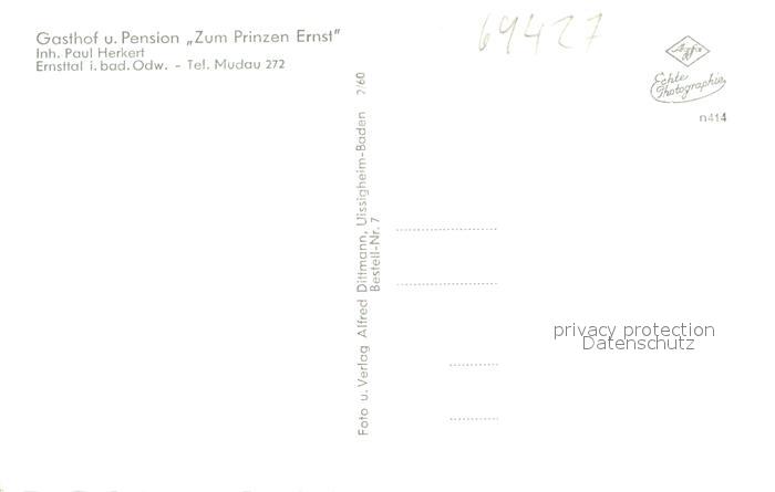 73644181 Ernsttal Baden Gasthof Pension zum Prinzen Ernst Schloss Waldleiningen Panorama Ernstttal Hirsch Wildschweine postalisch nicht gelaufen Erhaltung siehe scans [FriedD77] KatCode: 11110008225060