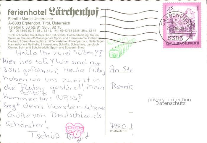72050141 alte Postkarte Erpfendorf Ferienhotel Laerchenhof postalisch gelaufen Erhaltung siehe scans KatCode: 11390335070410