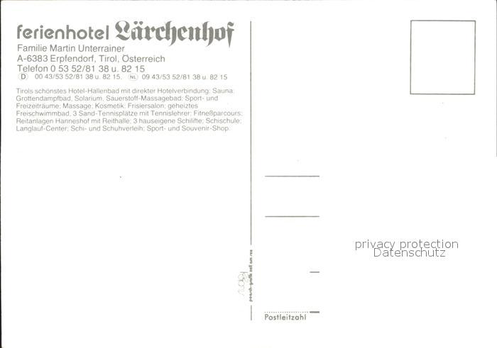 72283532 Erpfendorf Ferienhotel Laerchenhof Swimming Pool Fitnesscenter Reiten postalisch nicht gelaufen Erhaltung siehe scans KatCode: 11390335070410