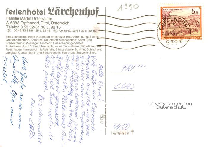 73204072 alte Postkarte Erpfendorf Ferienhotel Laerchenhof postalisch gelaufen Erhaltung siehe scans [NatalD47] KatCode: 11390335070410