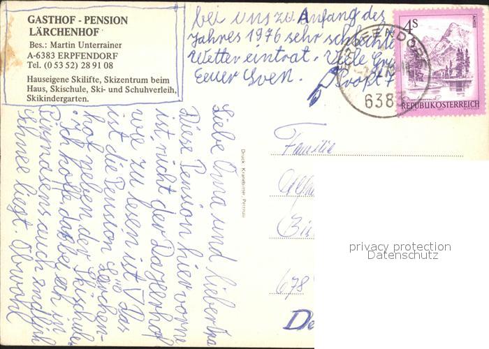 72257616 alte Postkarte Erpfendorf Gasthof Pension Laerchenhof Wintersportplatz Alpen postalisch gelaufen Erhaltung siehe scans KatCode: 11390335070410