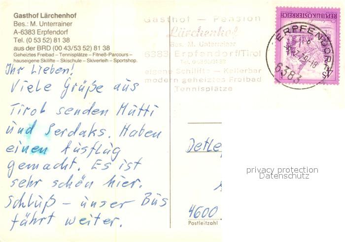 73363374 alte Postkarte Erpfendorf Gasthof Pension Restaurant Laerchenhof Swimming Pool Tennisplatz postalisch gelaufen Erhaltung siehe scans [FriedD77] KatCode: 11390335070410
