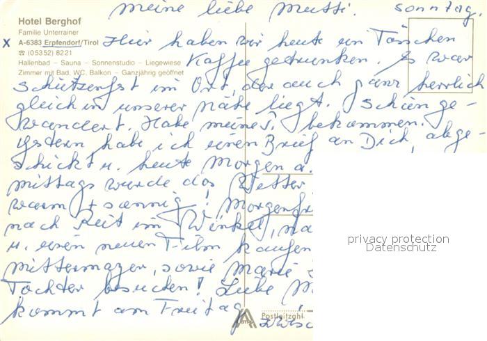 73644858 Erpfendorf Hotel Berghof Hallenbad Alpenflora postalisch nicht gelaufen Erhaltung siehe scans [FriedD77] KatCode: 11390335070410