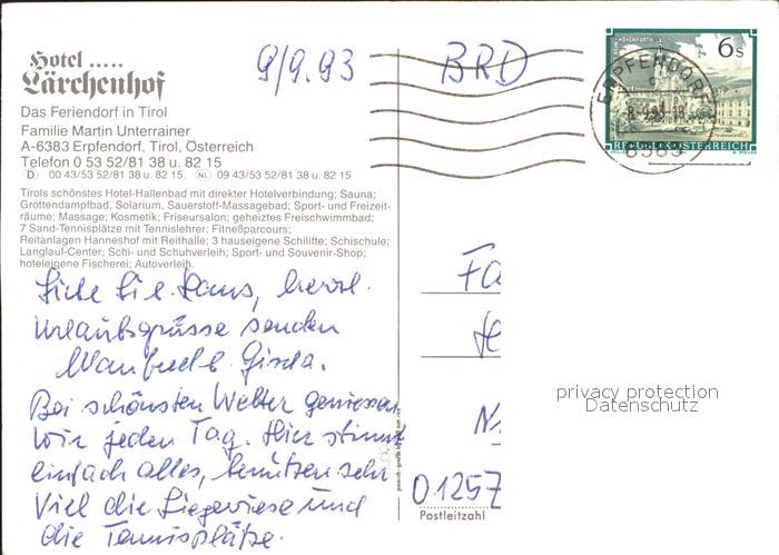 72013027 alte Postkarte Erpfendorf Hotel Laerchenhof postalisch gelaufen Erhaltung siehe scans KatCode: 11390335070410
