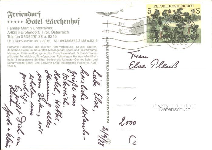 71971012 alte Postkarte Erpfendorf Hotel Laerchenhof postalisch gelaufen Erhaltung siehe scans KatCode: 11390335070410