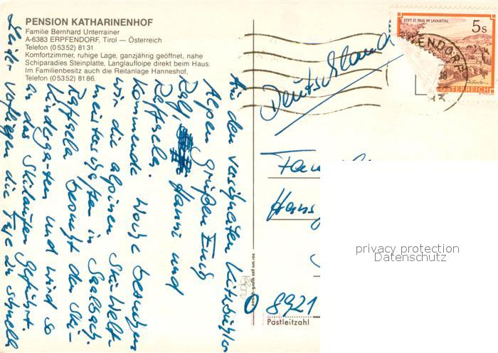 73630035 alte Postkarte Erpfendorf Pension Katharinenhof postalisch gelaufen Erhaltung siehe scans [WerneD78] KatCode: 11390335070410