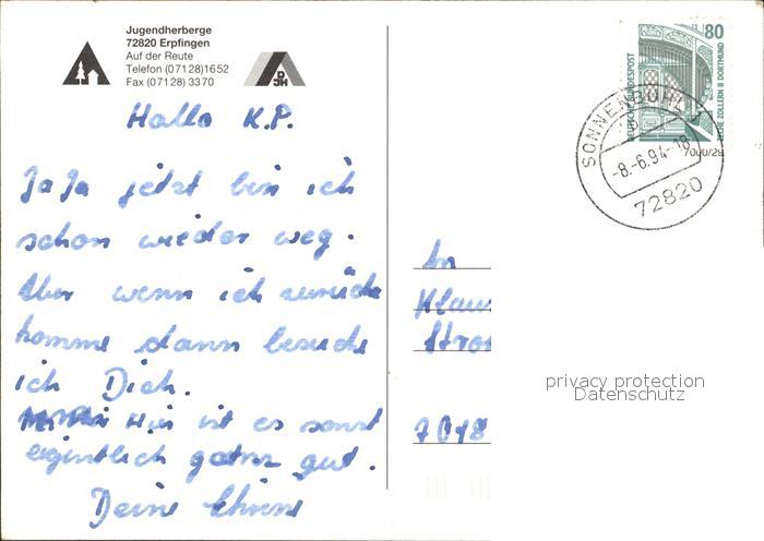 72052011 alte Postkarte Erpfingen Jugendherberge postalisch gelaufen Erhaltung siehe scans KatCode: 11110008415091