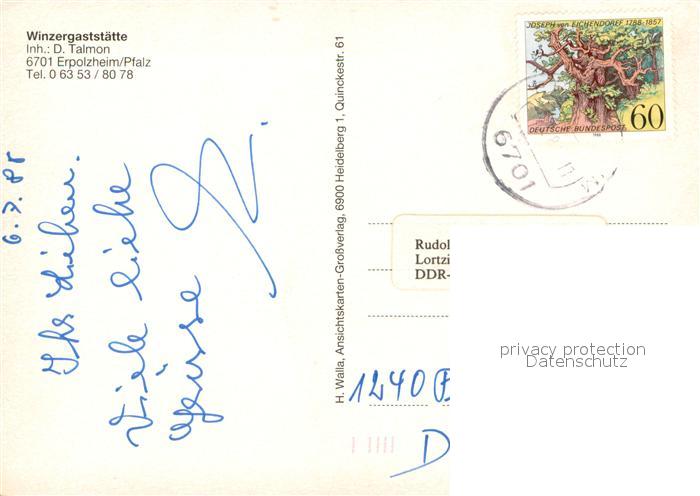 73667655 alte Postkarte Erpolzheim Ludwigshafen Winzergaststaette Ortsmotive postalisch gelaufen Erhaltung siehe scans [WerneD78] KatCode: 11110007332015