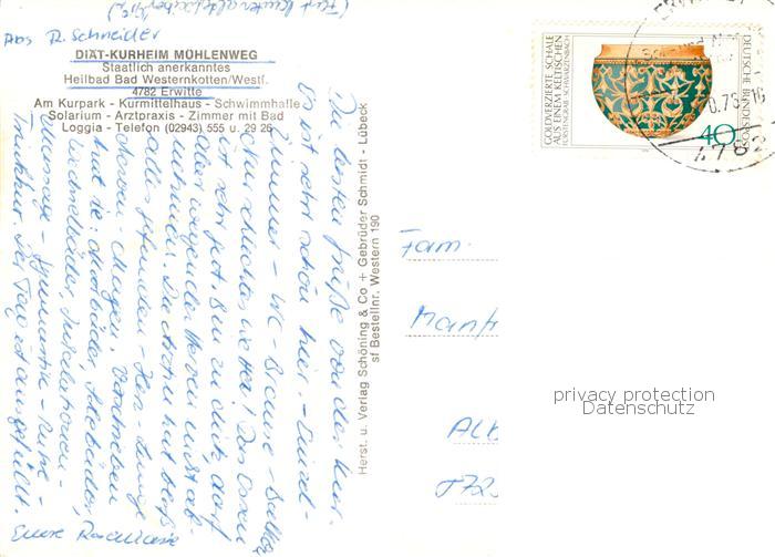 73873836 alte Postkarte Erwitte Kurheim Muehlenweg Zimmer Gastraeume postalisch gelaufen Erhaltung siehe scans [WerneD78] KatCode: 11110005974016