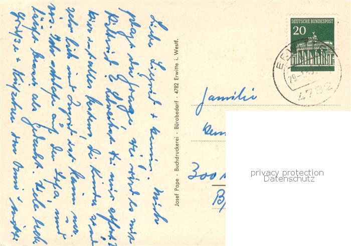 73762707 alte Postkarte Erwitte Laurentius Schule Marktplatz Marienhospital Im Stadtpark postalisch gelaufen Erhaltung siehe scans [FriedD77] KatCode: 11110005974016