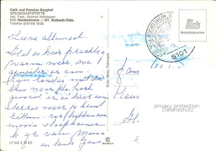 72526678 alte Postkarte Erzbach Gaststaette Cafe Pension Berghof postalisch gelaufen Erhaltung siehe scans KatCode: 11110006437013