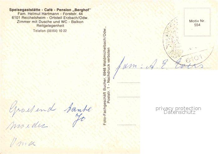 72773889 alte Postkarte Erzbach Gaststaette Pension Berghof Speisesaal Reiten postalisch gelaufen Erhaltung siehe scans [WerneD78] KatCode: 11110006437013