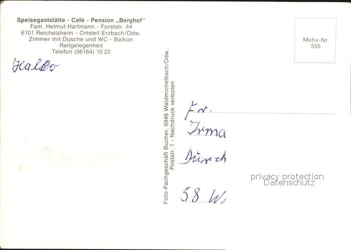 72417514 Erzbach Restaurant Cafe Pension Berghof postalisch nicht gelaufen Erhaltung siehe scans KatCode: 11110006437013