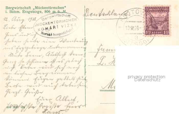 73622109 alte Postkarte Erzgebirge Region Bergwirtschaft Mueckentuermchen Boehm Erzgebirge postalisch gelaufen Erhaltung siehe scans [WerneD78] KatCode: 11110014171010