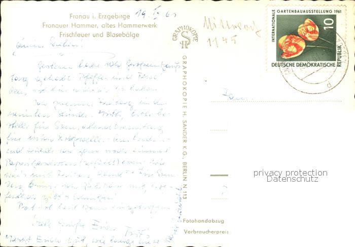 72399831 alte Postkarte Erzgebirge Region Fronauer Hammer Schmiede postalisch gelaufen Erhaltung siehe scans KatCode: 11110014171010
