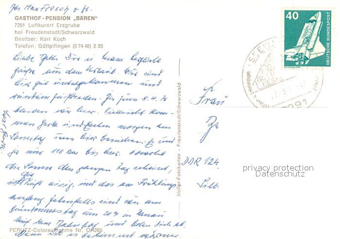 73646490 alte Postkarte Erzgrube Gasthof Pension Baeren im Schwarzwald Hallenbad See Wassersport postalisch gelaufen Erhaltung siehe scans [FriedD77] KatCode: 11110008237073