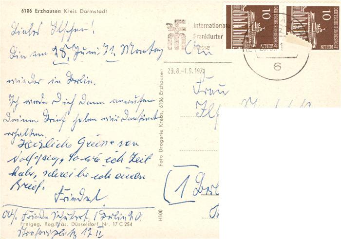 73872044 alte Postkarte Erzhausen Hessen Fliegeraufnahme postalisch gelaufen Erhaltung siehe scans [WerneD78] KatCode: 11110006432006