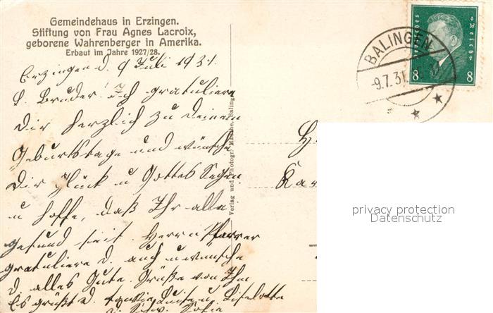 32977220 alte Postkarte Erzingen Zollernalbkreis Gemeindehaus postalisch gelaufen Erhaltung siehe scans [NatalD47] KatCode: 11110008417002