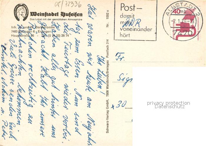 73644316 alte Postkarte Erzingen Zollernalbkreis Weinstadel Hufeisen Gastraum Bar postalisch gelaufen Erhaltung siehe scans [FriedD77] KatCode: 11110008417002