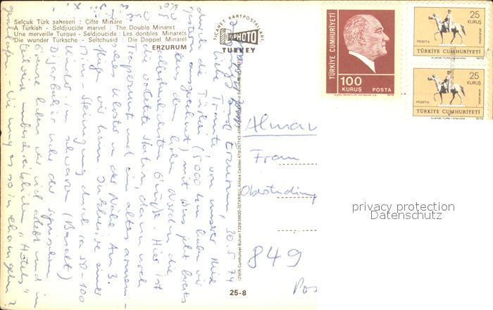old postcard Erzurum Erzeroum Doppelt Minaret postalisch gelaufen Erhaltung siehe scans