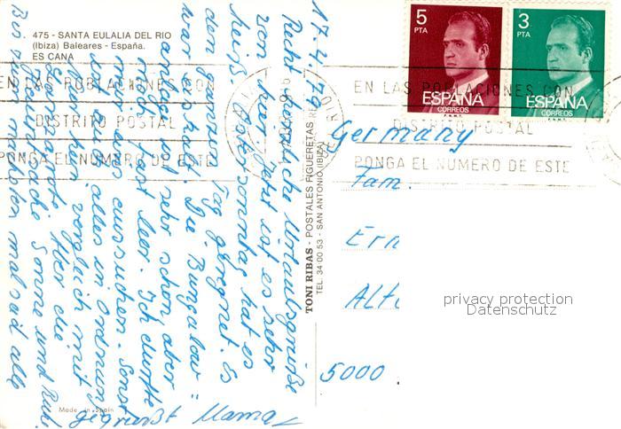 old postcard Es Cana Panorama Strand Kueste Segelboote Hotels postalisch gelaufen Erhaltung siehe scans [FriedD77]
