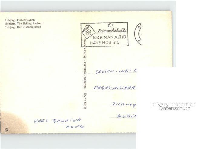 old postcard Esbjerg Fischereihafen Fischkutter Flagge postalisch gelaufen Erhaltung siehe scans