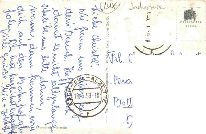 73972550 alte Postkarte Esch-sur-Alzette Luxembourg Rue de l’Alzette Les Forges Le Belvédère Ecole professionelle La Rosseraie postalisch gelaufen Erhaltung siehe scans [FriedD77] KatCode: 11300