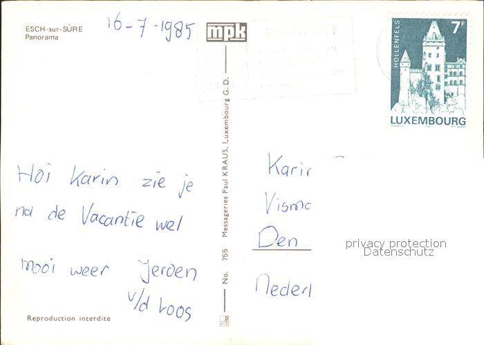 alte Postkarte Esch-sur-Sure Panorama postalisch gelaufen Erhaltung siehe scans