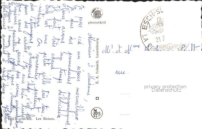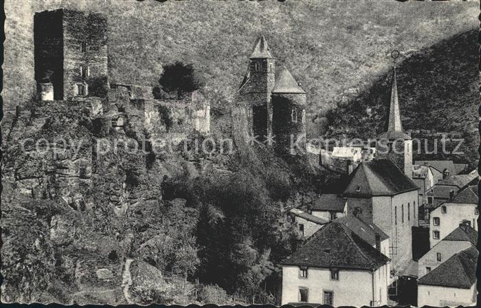 alte Postkarte Esch-sur-Sure Ruines postalisch gelaufen Erhaltung siehe scans