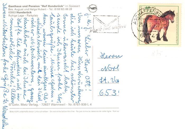 73883207 alte Postkarte Eschau Unterfranken Gasthaus Pension Hof Hundsrueck Gastraeume postalisch gelaufen Erhaltung siehe scans [FriedD77] KatCode: 11110009676123