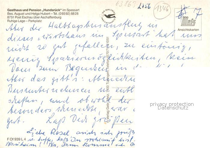 73570271 Eschau Unterfranken Gasthaus-Pension Hundsr?ck postalisch nicht gelaufen Erhaltung siehe scans [PaolaD17] KatCode: 11110009676123