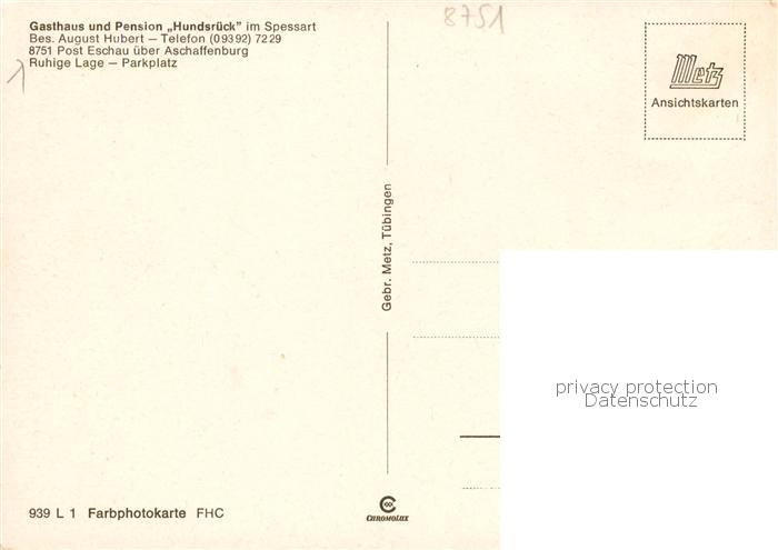 73866913 Eschau Unterfranken Gasthaus Pension Hundsrueck postalisch nicht gelaufen Erhaltung siehe scans [WerneD78] KatCode: 11110009676123