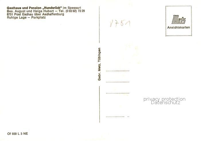 73866912 Eschau Unterfranken Gasthaus und Pension Hundsrueck postalisch nicht gelaufen Erhaltung siehe scans [WerneD78] KatCode: 11110009676123
