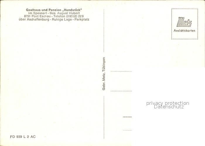 72507737 Eschau Unterfranken Restaurant Pension Hof Hundsrueck postalisch nicht gelaufen Erhaltung siehe scans KatCode: 11110009676123