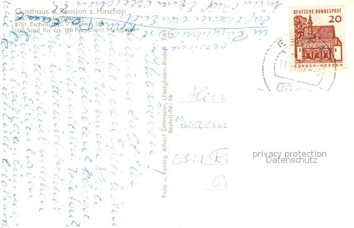 73608496 alte Postkarte Eschau Unterfranken Schloss Sommerau Wildschweine Schloss Mespelbrunnen postalisch gelaufen Erhaltung siehe scans [FriedD77] KatCode: 11110009676123