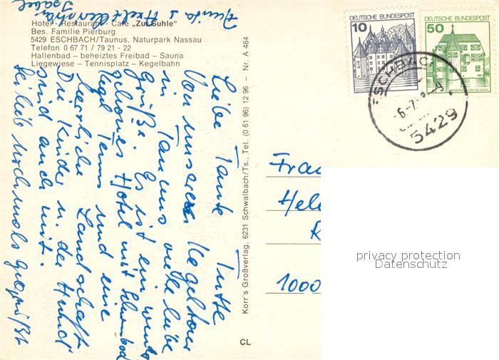 73641754 alte Postkarte Eschbach Nastaetten Hotel Restaurant Zur Suhle Tennisplatz Hallenbad postalisch gelaufen Erhaltung siehe scans [FriedD77] KatCode: 11110007141040