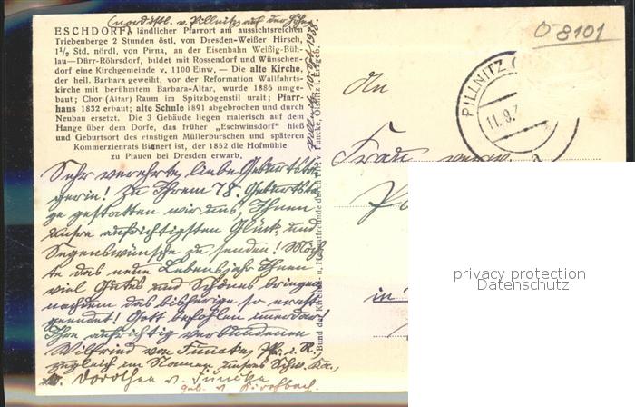 42315802 alte Postkarte Eschdorf Schoenfeld-Weissig Teilansicht in alter Zeit postalisch gelaufen Erhaltung siehe scans KatCode: 11110014262000