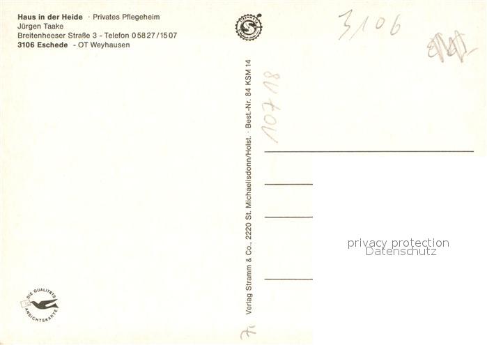 73666274 Eschede Haus in der Heide Pflegeheim postalisch nicht gelaufen Erhaltung siehe scans [LiesaD40] KatCode: 11110003351009
